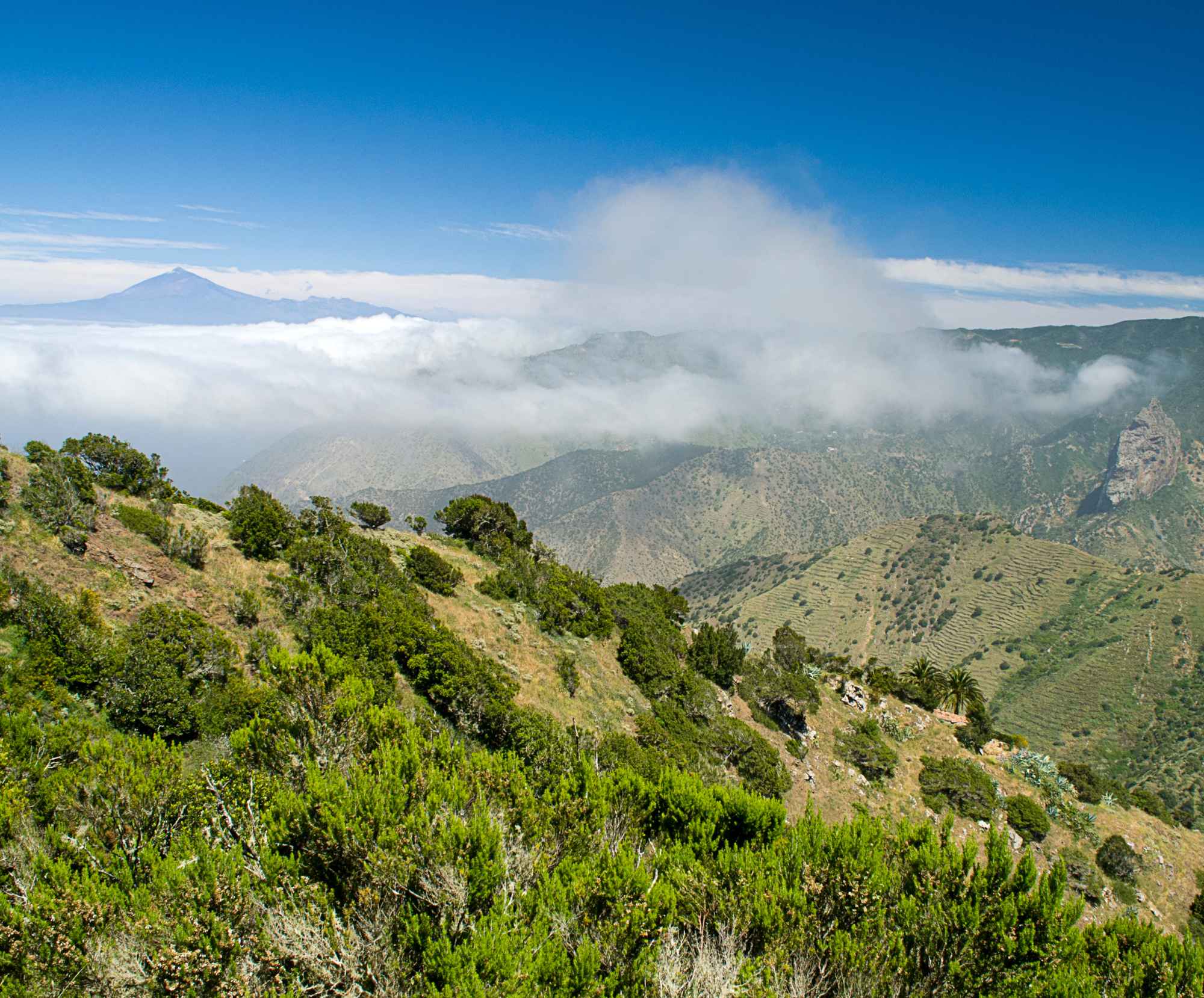 Puedes recorrer el Parque Nacional de Garajonay, caminar entre palmerales en Valle Gran Rey o subir a los roques volcánicos que dan forma a su perfil.